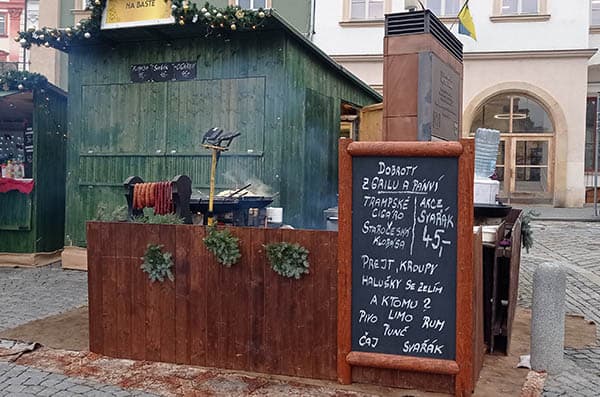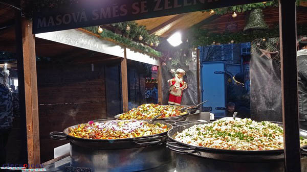 You can taste here the traditional mulled wine called svařák, honey licor medovina, grilled meat, sausages, cheeses, trdelník, Belgian chocolate and much more.