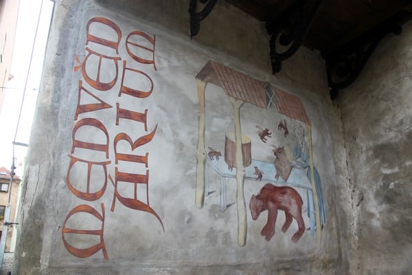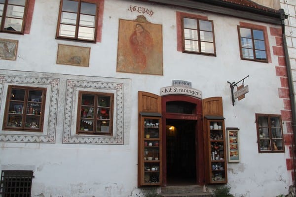If you want to learn a bit about the history of Jews in this town, you must head south to the Plešivec quarter. The synagogue recently underwent extensive restoration and there’s a cozy café in the former apartment of the rabi with a place for the children. And it’s at this synagogue that we begin our walk through the historical part of Český Krumlov.