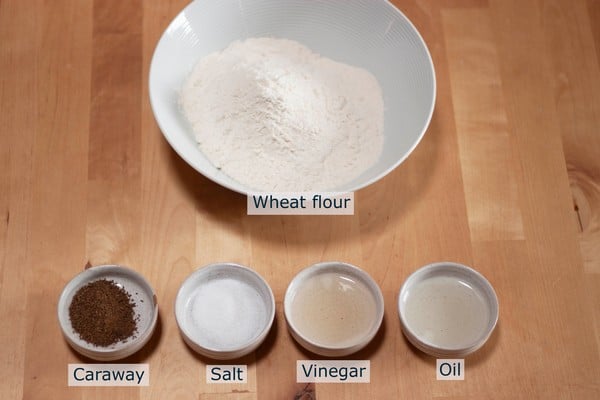 If you don’t like caraway, just skip it. It’s a very typical ingredient in Czech bread but don’t worry about it too much if you don’t want to use it. If you do, I recommend using ground or crushed caraway for the dough and full seeds to sprinkle the bread with. Also, if you have any problem with vinegar, you can skip it, as well. It helps the fermentation process and some people say it makes the crust crunchier. An ingredient you shouldn’t skip is the salt. The amount given will not make the bread taste salty but it’s very important and you will notice the difference if you skip the salt (Czechs call it jalový – idle).