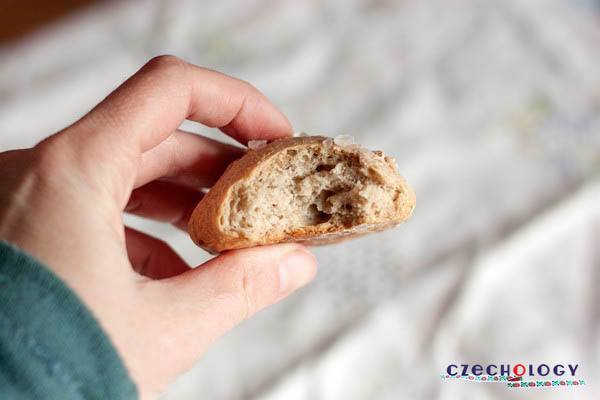These bread buns are very popular in the Czech Republic and you’ll like them if you’re a fan of the Caraway Seed Bread. Unlike this bread, however, they don’t require much kneading (and they’re very dense) and they’re much smaller. The dough traditionally has a lot of caraway seeds and is sprinkled with caraway seeds and large-grain salt.