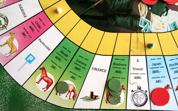 Dostihy a sázky is a Czech board game of buying, trading and betting on horses loosely inspired by the American board game Monopoly.