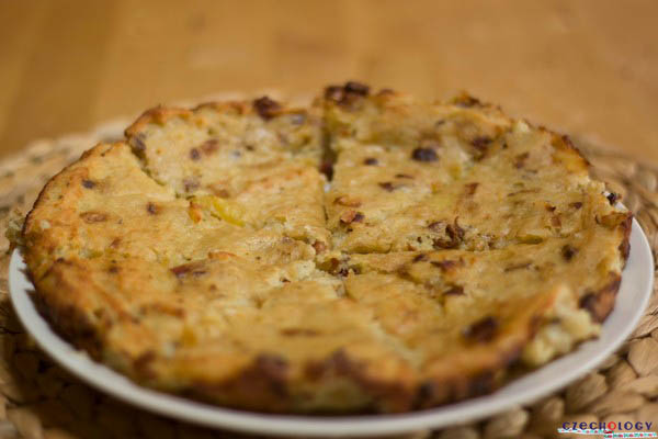 If I should describe what Fofrovanec is I would say that it’s like the potato pancakes Bramboráky with one extra ingredient and baked instead of fried. It’s a simple dish that you can make fast and you can make lots of it.