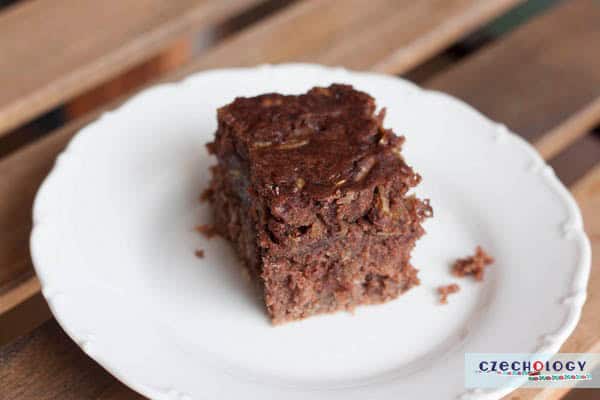 While gingerbread cake is very common in the Czech Republic (it’s called perník na plech – “baking tray gingerbread”), I think the gingerbread-zucchini cake is not so common but it’s also not uncommon to see desserts made from vegetables in Czech cuisine, mainly potatoes – for example, Potato Bábovka, Šišky, Patenty or Jabkance.