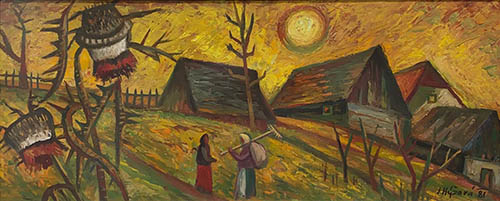 Her work was influenced by a trip to Paris in 1957, after which her work shows more colors and lights, in the 1960 her work becomes more meditative, Hýžová was more and more fascinated with the Wallachian landscape and nature.