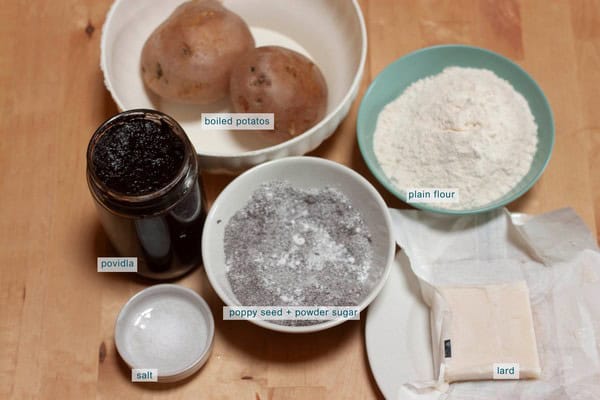 Patenty (also bramborové placky s makem a povidly) are one of a long series of Czech desserts made from potatoes. The combination of their texture with the povidla and poppy seed filling is what makes them irresistible.