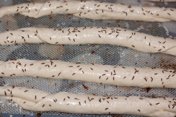 This is generally very variable recipe, you can also add seeds into the dough and as you can see, I sprinkle mine with large-grain salt and caraway seeds.