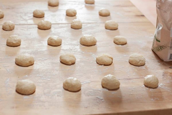 Sprinkle some all-purpose flour on your table. Scoop small amounts of dough and form balls.
