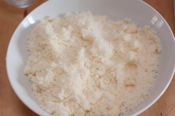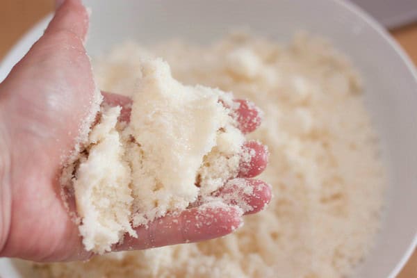 This is the ideal streusel – when you squeeze it, it holds the shape but it crumbles instantly.