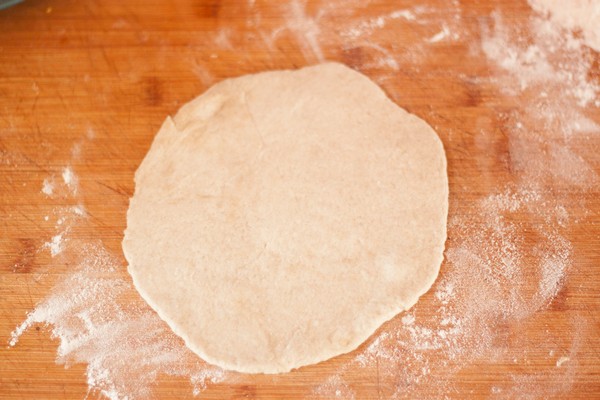 Roll each piece out flat. Flatbreads would be traditionally made directly on the old stove but since we mostly don’t have those anymore, we use pans without any grease. You can also bake them in the oven, I’ll tell you how to do both.