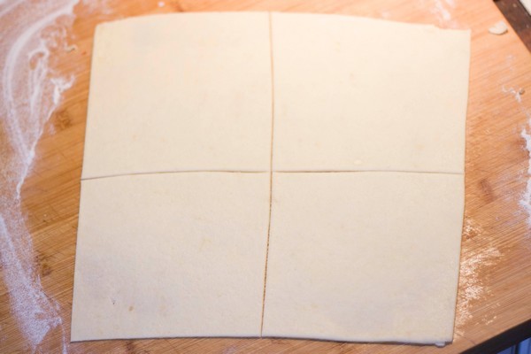 Roll the dough out and cut it into squares.