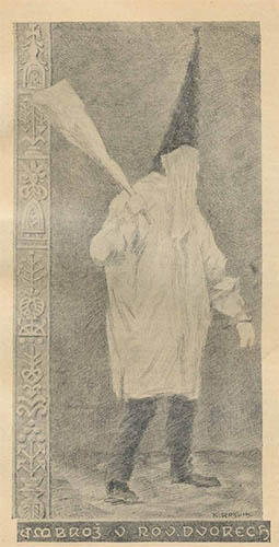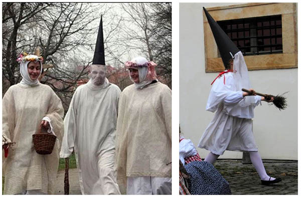 St. Ambrose (sv. Ambrož in Czech) was a bishop from Milan and his symbols are a beehive and a twig whisk. You can see both at the peculiar tradition performed at the Day of St. Ambrose which is December 7 which is currently being revived in some places. Dressed in white, with a black pointy hat and a white veil covering his face, a man or a boy representing the saint would come to the local church at sundown and chase children around it. Just like Barborky, Mikuláš and Lucky, this is another tradition that involves scaring children.