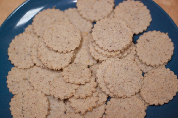 Combine all the ingredients for the crackers well, knead until the dough is smooth. Wrap in foil and let the dough rest in the fridge for at least two hours.