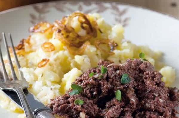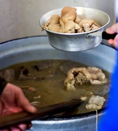 Although the name literally means “ass-soup” it has nothing to do with anyone’s bottom. It is a strong broth from various parts of the pig’s entrails mixed with blood and hulled grain.