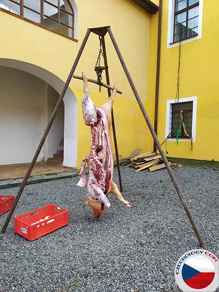The purpose of zabíjačka was to make use of the whole animal which means not only processing the meat but also the other parts.