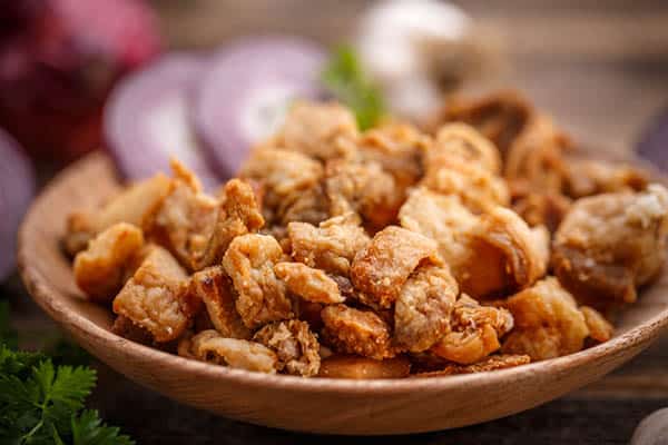 This delicacy is what’s left after the fat layer has been fried to loose all fat, so simply pork scratchings.