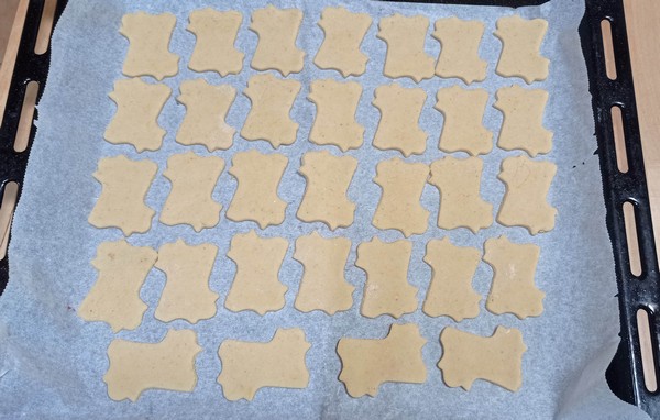 Roll out the dough to about 0,5 cm/0.4 in thick and cut out the shapes. Place them on a baking tray and let them dry overnight, by which time they will be hard.